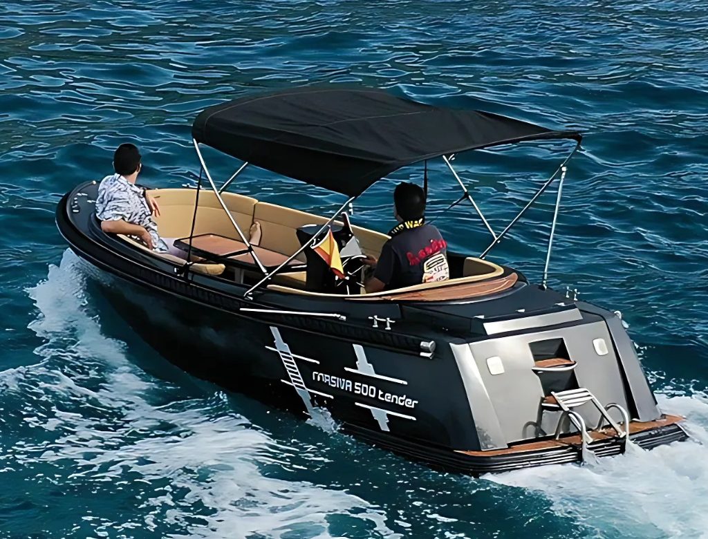 Vive una experiencia única al alquilar un barco en Oropesa del Mar con la elegante Corsiva Tender 500. Esta moderna lancha de diseño es ideal para disfrutar de las aguas cristalinas y tranquilas de la Costa de Azahar sin necesidad de titulación náutica. ¡Tú mismo podrás ser el capitán de tu aventura!
